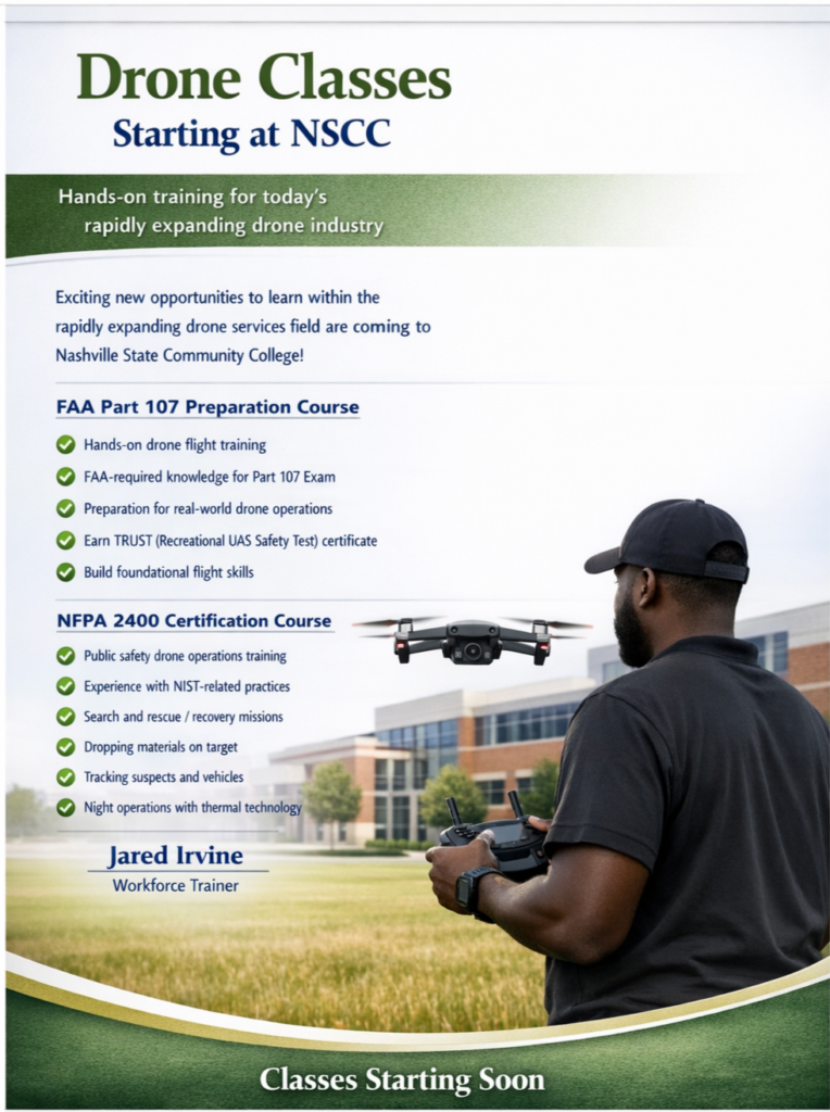 This year, we are launching Commercial Drone (UAS) Certification Training, providing learners with the skills and credentials required to enter the rapidly growing field of unmanned aircraft operations. In addition, we are introducing EntryLevel Surveying, a ‑handson‑ program built to equip participants with foundational surveying skills that support careers in construction, engineering, land development, and geospatial technologies.