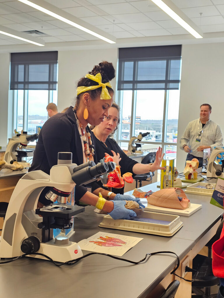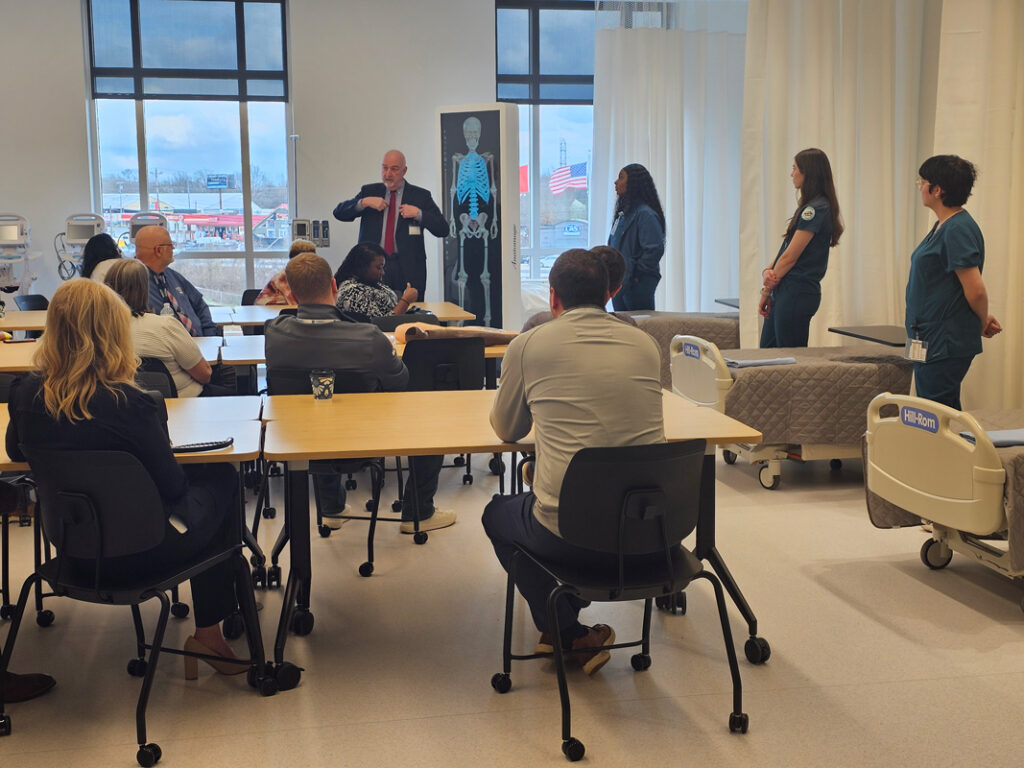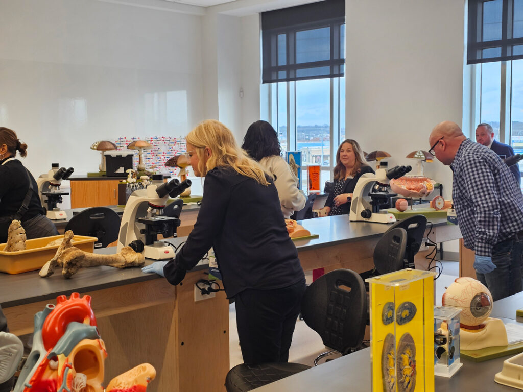 The visit opened with a tour of NSCC’s new campus, with the highlight being the Nursing Simulation Labs, where participants saw how advanced technology is used to train future healthcare professionals. The visit also included a tour of our state-of-the-art Biology lab, where guests participated‑ in hands-on demonstrations led by Nashville State faculty member and biologist, Amelia Rinehart.